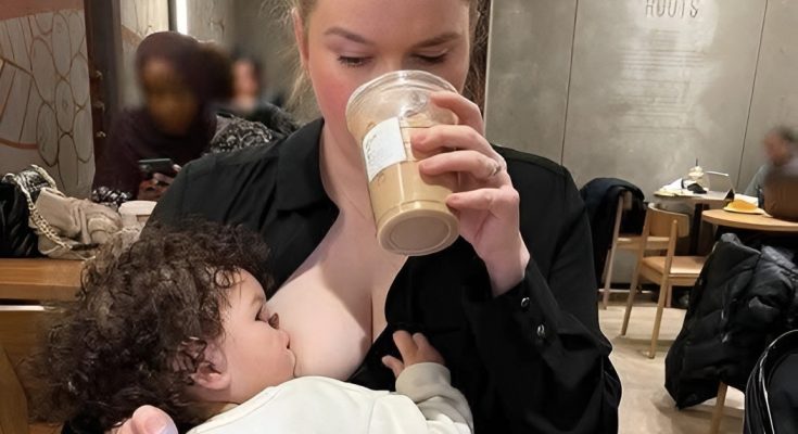 But as the photo began circulating online, viewers noticed a detail that changed how many people reacted to it. The mother was feeding her baby openly in a public space, without attempting to hide or draw attention to herself. What followed was not outrage over the image itself, but a widespread conversation about how society responds to moments that are both natural and deeply human.