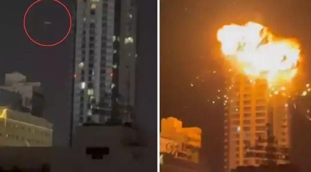 An Iranian drone struck a skyscraper in Bahrain. The violent explosion that occurred in the building was captured on camera.