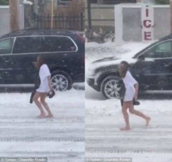 The clip was posted online on by West Virginia-based Twitter user Chandlar Fowler, who suggested one reason for the woman’s sparse attire. WATCH THE VIDEO BELOW: