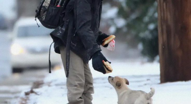 The dog crept forward, sniffed the sandwich, then gulped it down in seconds. Eli smiled and sat cross-legged, munching on his half while watching the dog like they were just two old friends having lunch.