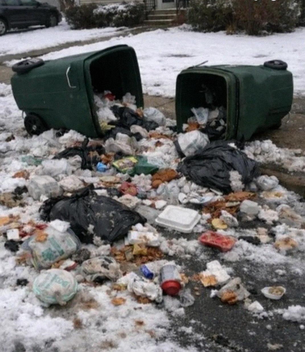 I woke up one Tuesday morning to find both my trash bins knocked over, garbage scattered across the entire front lawn. Diapers lay frozen in the snow. Food containers were littered everywhere. Coffee grounds were mixed with slush.